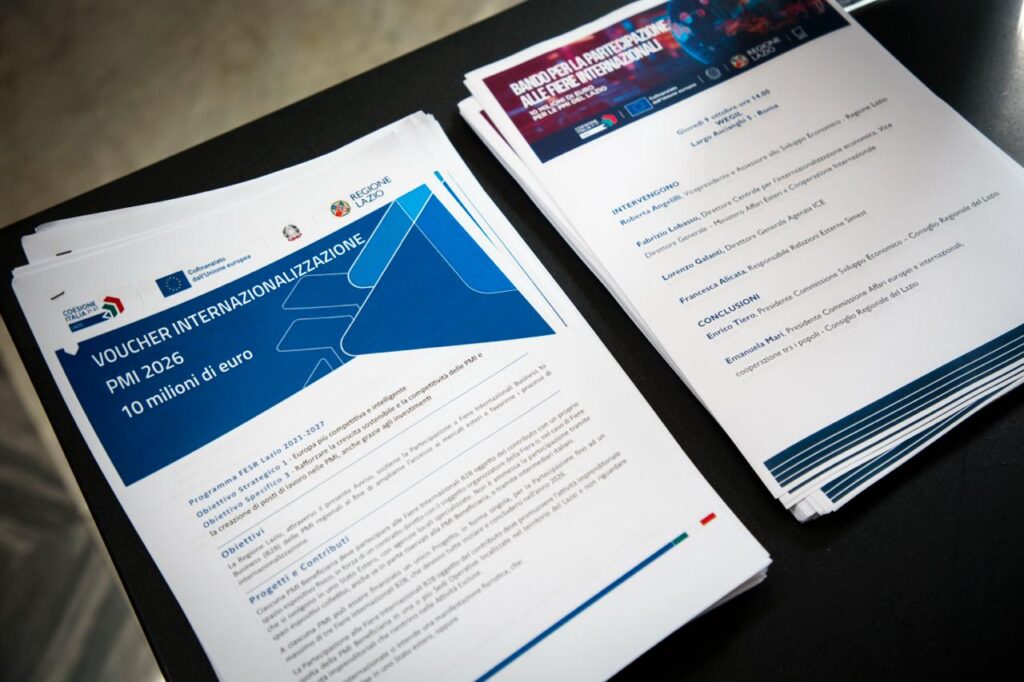 La Regione Lazio ha presentato oggi presso WEGIL la nuova misura “Voucher Internazionalizzazione PMI 2026”, un intervento strategico da 10 milioni di euro nell’ambito del Programma FESR Lazio 2021-2027. L’iniziativa, rivolta alle piccole e medie imprese del territorio, mira a rafforzare la crescita sostenibile e la competitività delle imprese laziali, favorendo la loro partecipazione a Fiere Internazionali e promuovendo l’accesso ai mercati esteri.