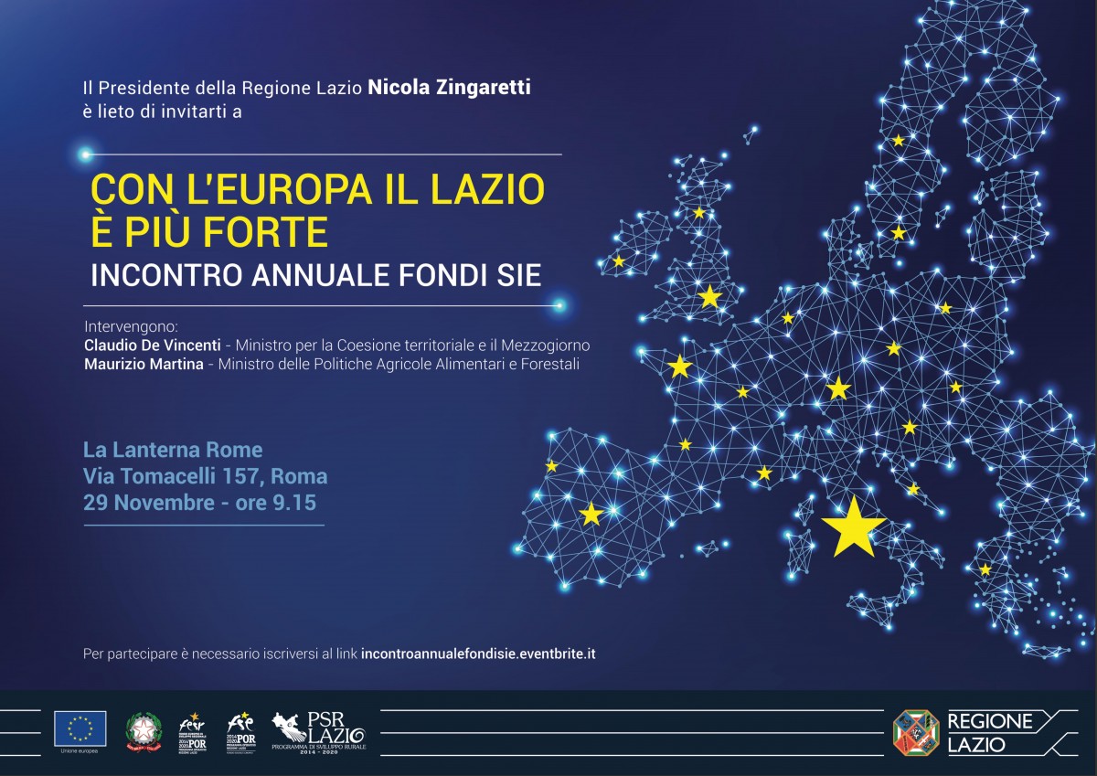 Con l’Europa il Lazio è più forte: le 45 azioni cardine dei Fondi SIE 2014-2020 sono state presentate dalla Regione Lazio, illustrando gli investimenti finora realizzati e gli obiettivi da concludere.